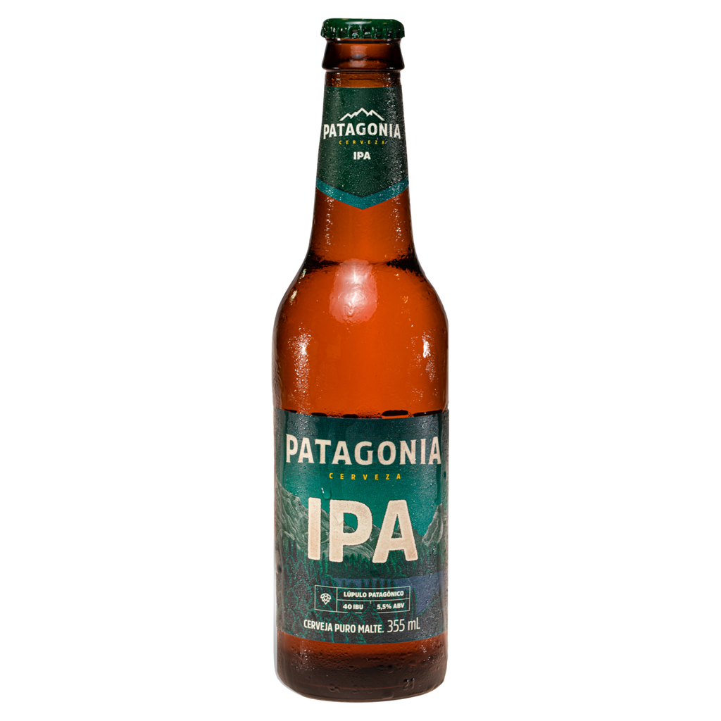 A Patagonia IPA é feita com lúpulos plantados e colhidos na Patagônia. Coloração acobreada, límpida e brilhante. Intenso aroma frutado e cítrico com notas resinosas e herbais. Sabor lupulado com amargor marcante e duradouro. Corpo leve e refrescante. Experimente com carnes com gordura.