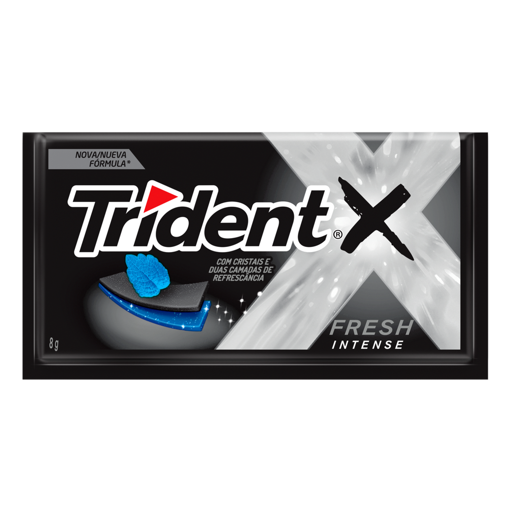 Descubra a linha Trident XSenses e se surpreenda com sabor da sua goma preta com cristas e duas camadas.Compre agora o Chiclete Trident XSenses Intense Sem Açúcar de 8g com 5 unidades. Sinta a refrescância do sabor intense.Em uma embalagem prática e fácil de guardar, é ideal para levar para todo lugar, seja para o trabalho ou curtir com os amigos.