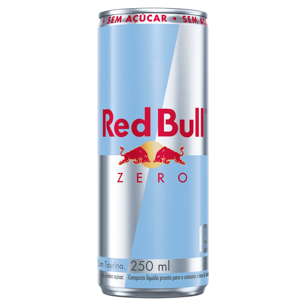 Bebida energética Red Bull Energy Drink Zero com fórmula sem açúcar, desenvolvida para fornecer energia e aumento de concentração sem calorias adicionais. Contém cafeína e outros ingredientes característicos da marca, proporcionando efeito estimulante e sensação de disposição. Lata de 250 ml, indicada para consumo gelada ou quando for necessário um impulso extra de energia.