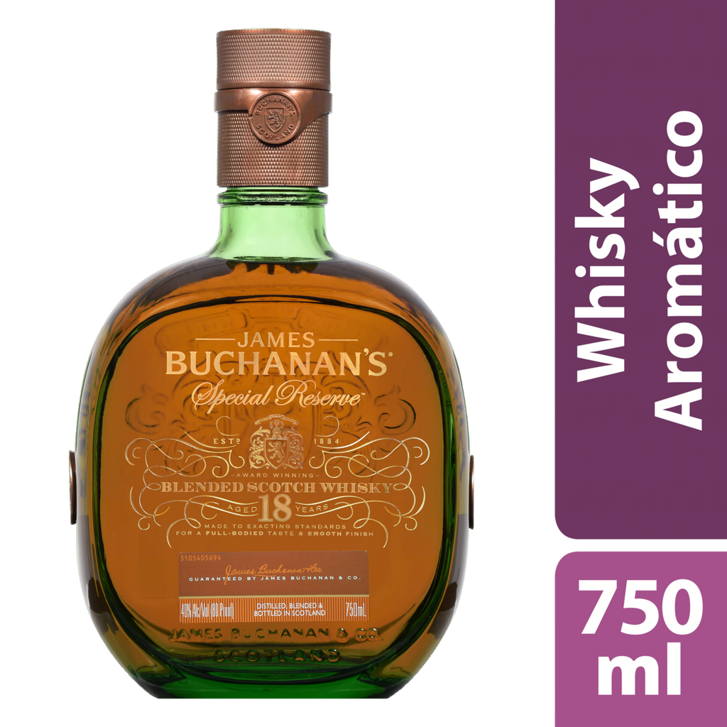 Whisky Buchanan's foi criado há mais de um século atrás, por James Buchanan. Em 1879, começou a buscar por uma mistura que tivesse tanto qualidade quanto um sabor inconfundível. Whisky Buchanans 18 Anos Special Reserve é uma mistura de whiskies de grãos e single malts envelhecidos por pelo menos 18 anos, em barris de carvalho europeu e americano. É um whisky distinto, rico, bem arredondado e foi criado há mais de um século atrás por James Buchanan. Seu perfil de sabor é encorpado e aromático.
